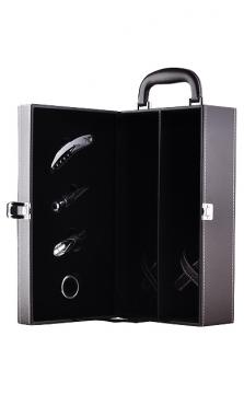 經典棕黃色雙支皮盒(帶酒具配件)
