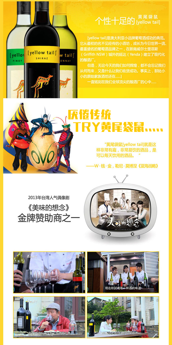 500,000箱。全世界銷量最大的澳大利亞葡萄酒品牌之一,巨著《藍海戰略》的作者莫博涅對黃尾袋鼠有這樣的描述:“yellow